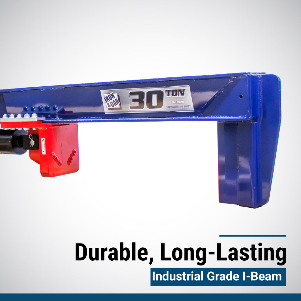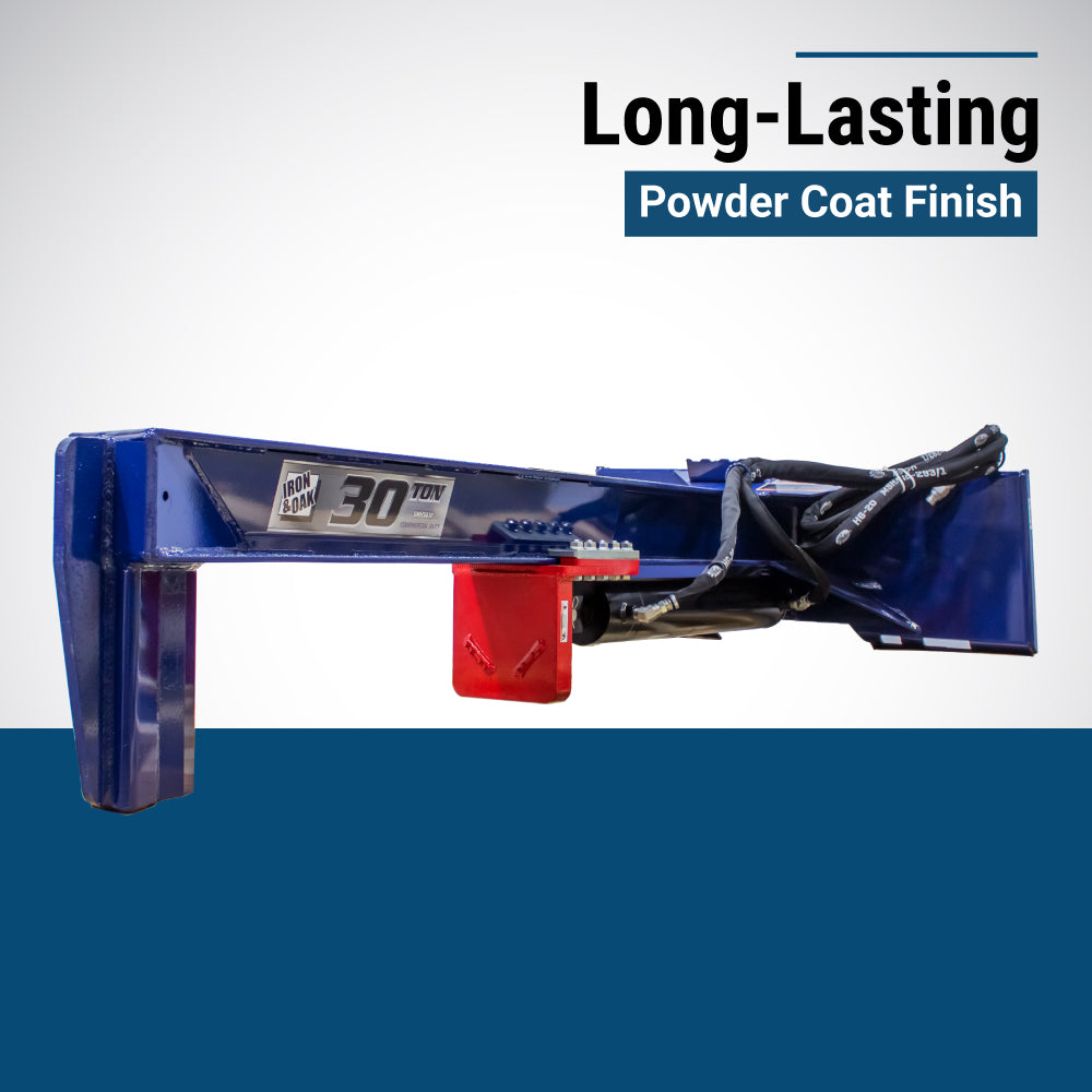 Iron & Oak has built another incredible piece of equipment to add to their commercial rated line of products. This 30 Ton unit is the 'big bother' to the successful 24 ton. Not only does this heavy duty splitter have more splitting force capability, it also has a longer opening to accommodate a 31" length log. This log splitter is great for splitting the extra large logs that you don't want to even think about lifting or splitting by hand.