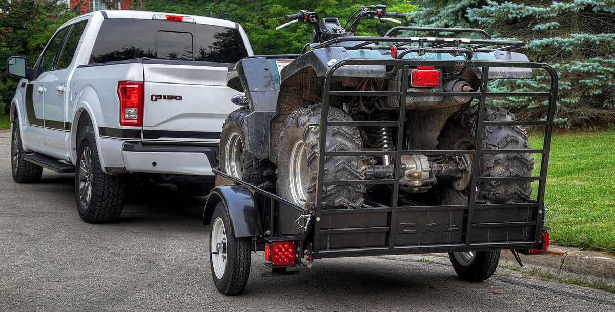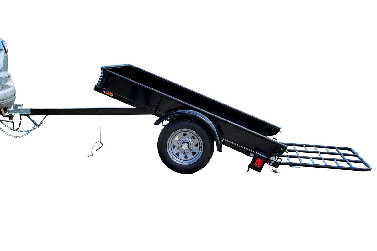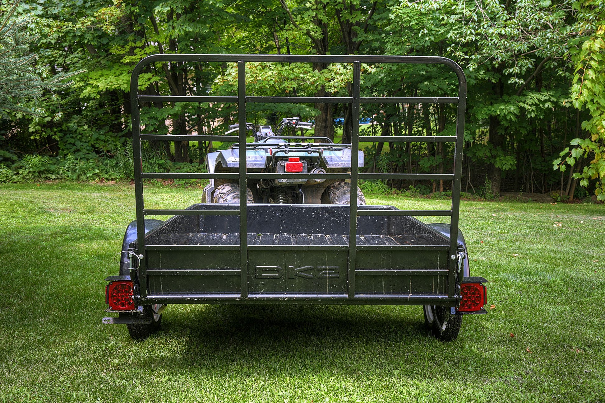 The DK2 MMT4X6 single axle 4 ft. x 6 ft. trailer is the perfect solution for anyone needing to pull a trailer behind a small vehicle, full size, lawn tractors or ATVs. This trailer is engineered to provide exceptional balanCE and ease of mobility with a load capacity of 1,600 Lbs. It is made from 100% welded tubular steel with expanded steel decks. The back gate is multi-purpose and can sit flat in the bed, up in a vertical position or lying down as a ramp for easy loading.