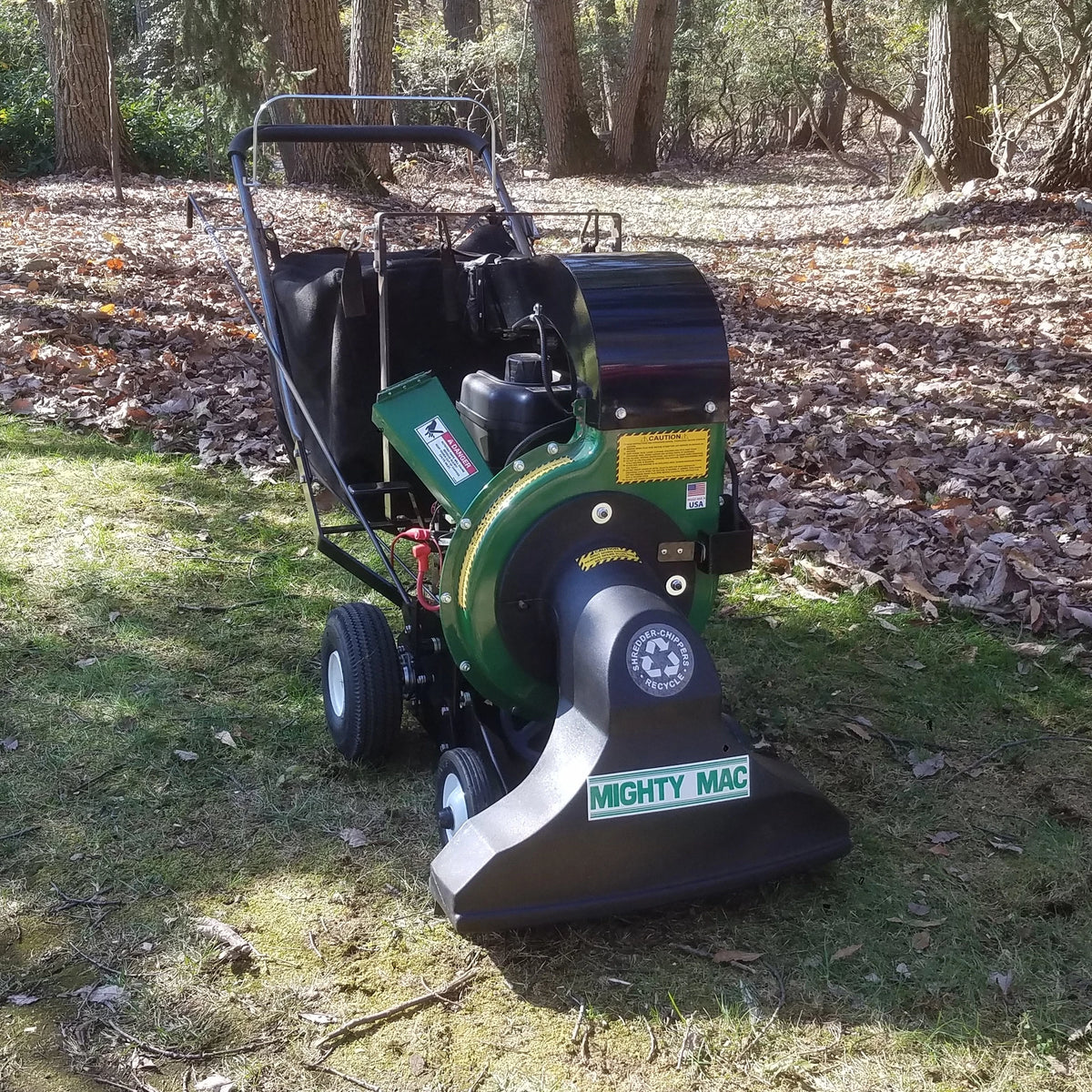 The Mighty Mac Vacuum-Chipper-Baggers makes debris clean up easy. Yards, driveways, patios, sidewalks, and parking lots are no obstacles for this self-propelled walk-behind machine.