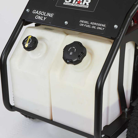 Power comes from a Honda GX390 engine with electric start, paired with a CAT Pumps direct-drive pump for quiet, reliable performance. A fuel-efficient downdraft burner and large 8-gallon fuel tanks extend run time, letting you work longer with fewer refueling stops.