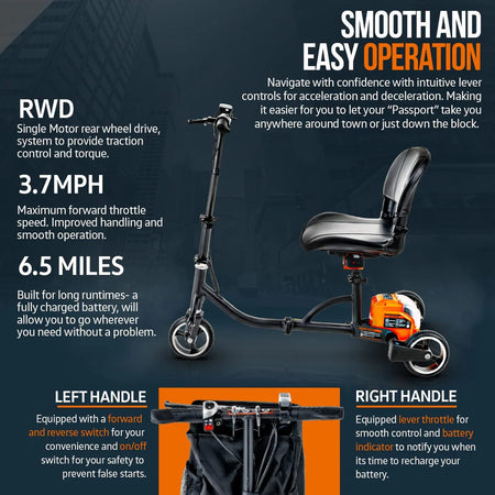 Super Handy "Passport" 48V Ultra-Light Folding Mobility Scooter – Airline Approved, Lithium Battery Powered