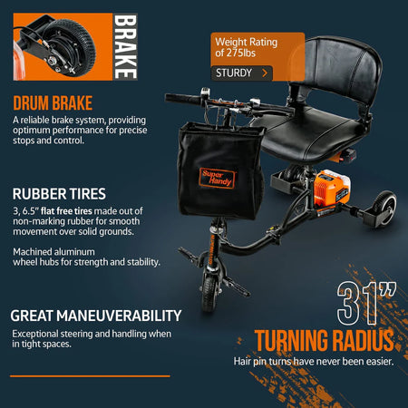 Experience true freedom and mobility with the SuperHandy "Passport" Mobility Scooter—one of the lightest, most travel-friendly scooters on the market. Designed with portability, comfort, and convenience in mind, the Passport features an airline-approved lithium battery system, a compact foldable design, and powerful performance in a lightweight frame.