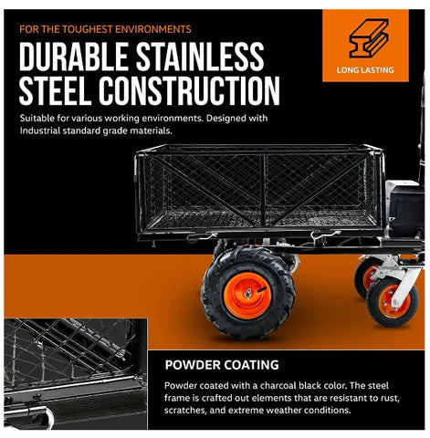 Whether you're moving mulch, tools, firewood, or gear, the SuperHandy Electric Utility Cart is your reliable, green solution for landscaping, farming, construction, and general transport.